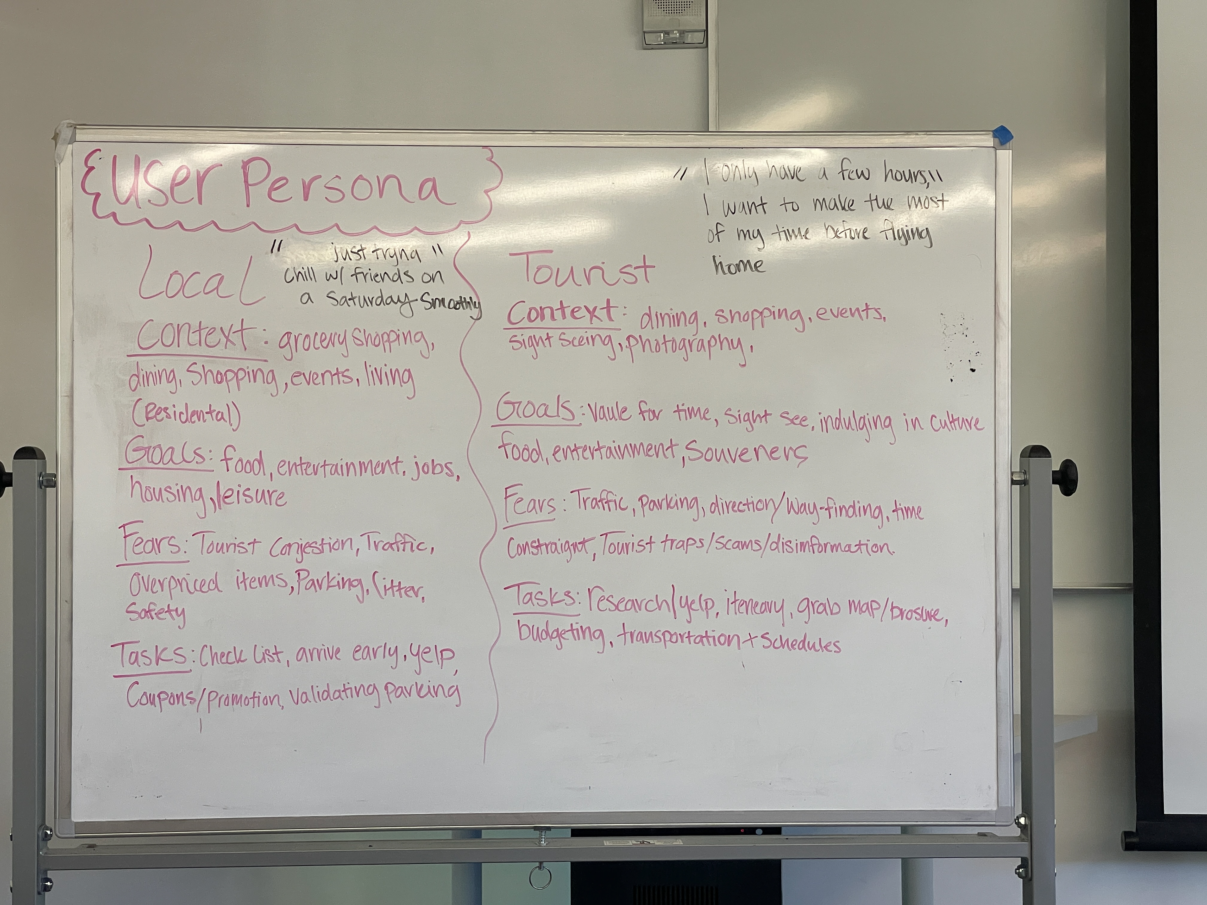 We pulled out our whiteboard and started to generate creative ideas and potential solutions. We also encourage team collaboration and diverse thinking in class and ended up with our POV Statement to help us set a clear vision or goal.